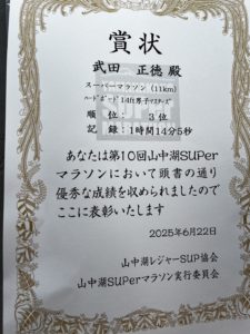 第10回山中湖SUPerマラソンで3位入賞いたしました🏆✨