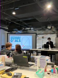 SDGsでは、各部の目標、取り組み、そして成果について発表。